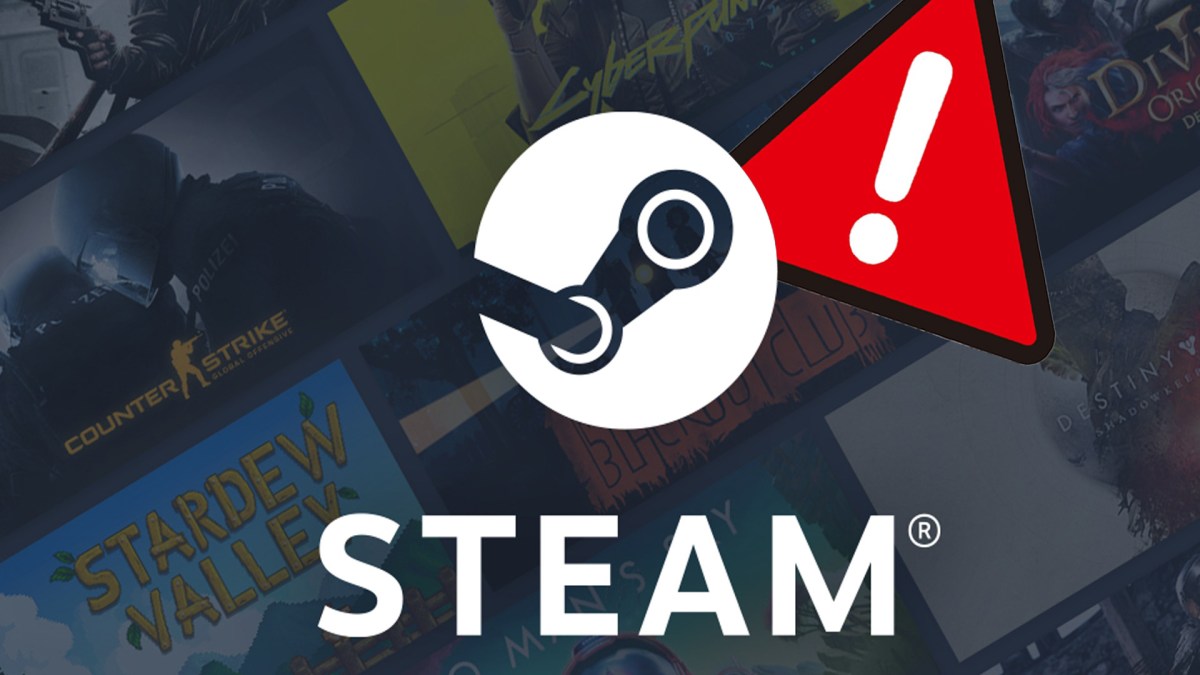 Screenshot von Steam versehen mit einem roten Warndreieck und einem weißen Ausrufezeichen.